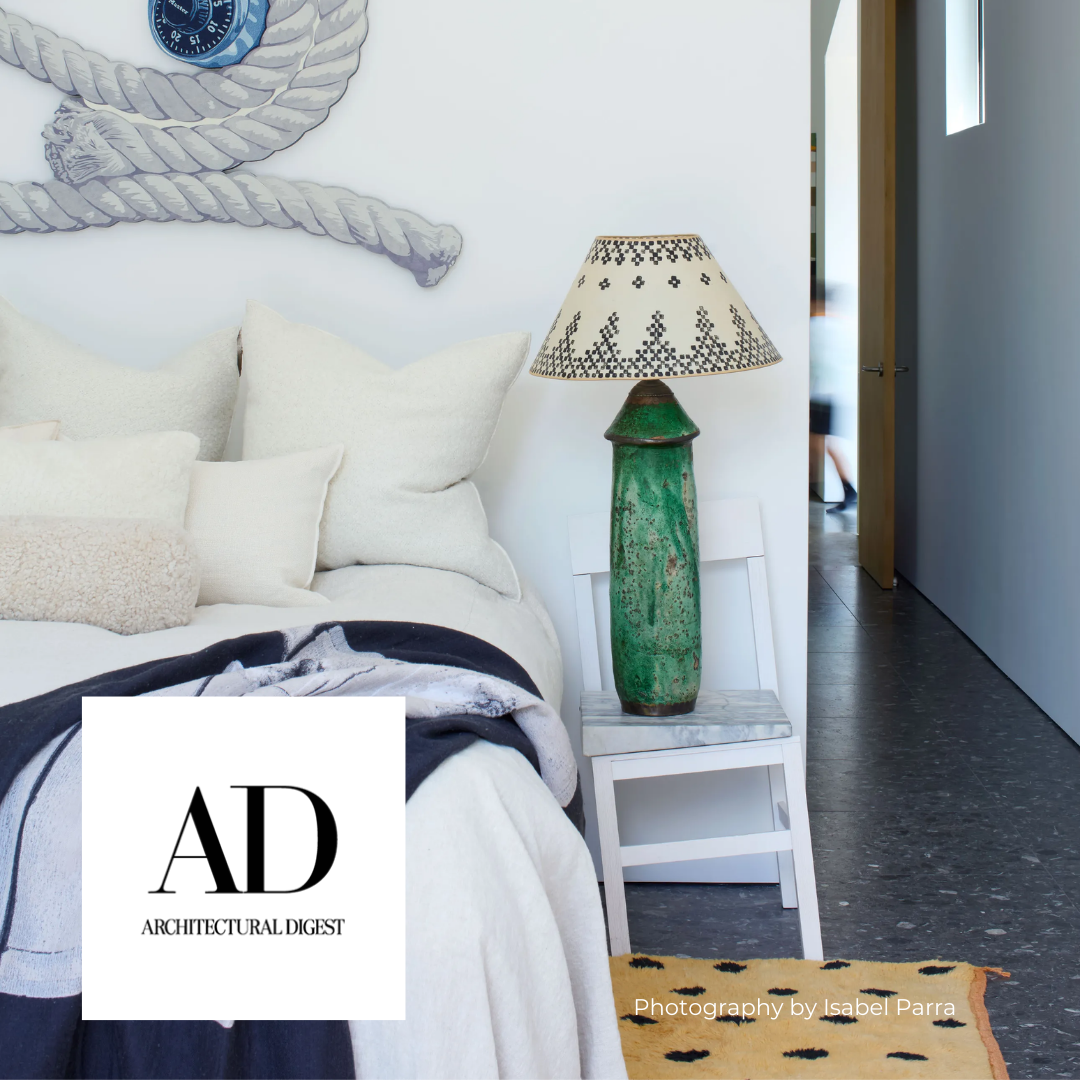 As seen in Architectural Digest. Our European Flax Heavyweight Bedcover in White provides the serene foundation for Daniel Arsham’s iconic Bridgehampton compound.